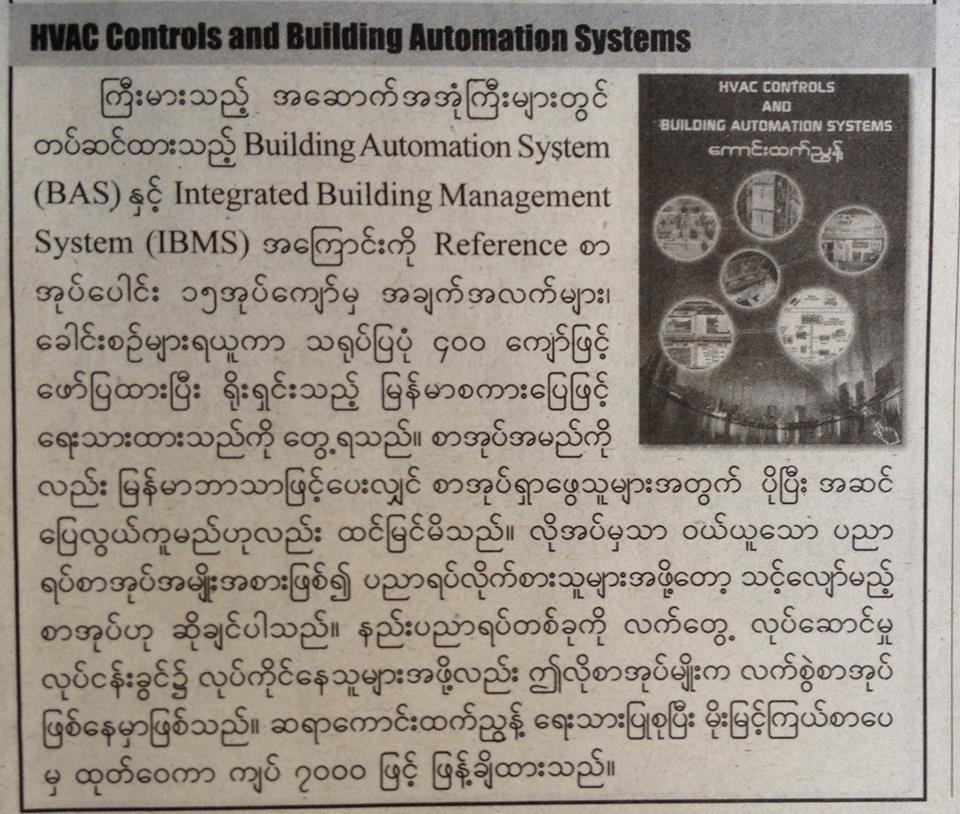 ေပၚျပဴလာ သတင္းဂ်ာနယ္ ရဲ့ စာအုပ္လြင္ျပင္က ညႊန္းတဲ့ Building Automation Systems စာအုပ္ပါ။